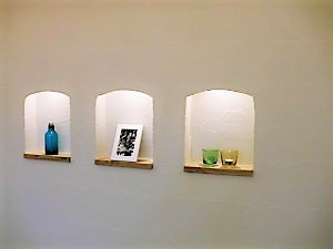 こちらのお部屋の壁材にはEM珪藻土を使用しております。