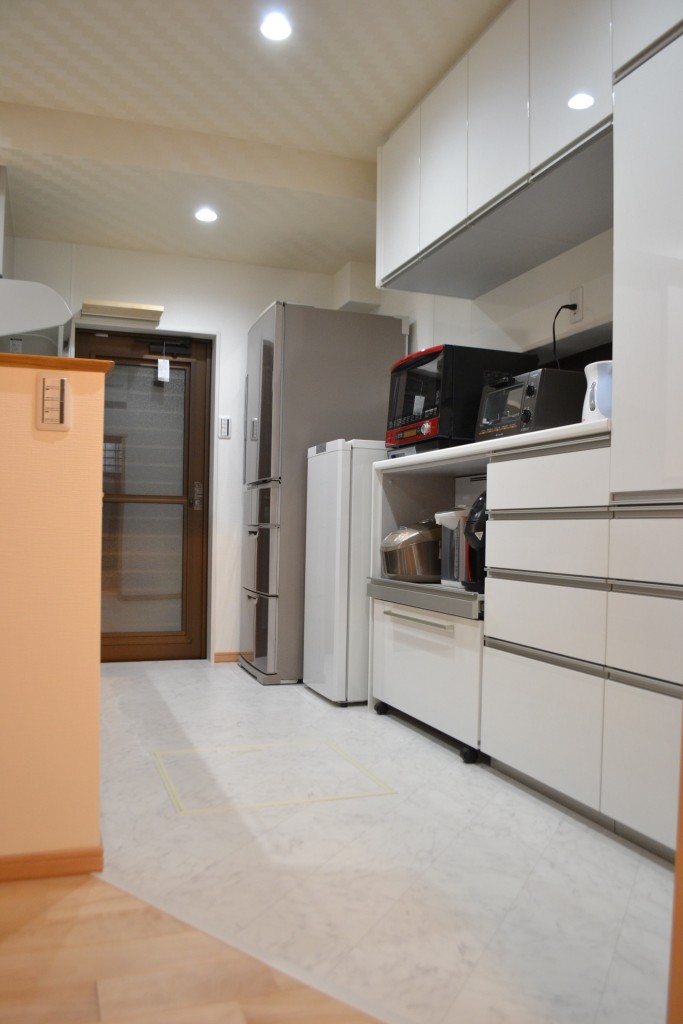 また、キッチンスペースは水廻りで汚れが気になるとのことでしたのでクッションフロアを採用しています