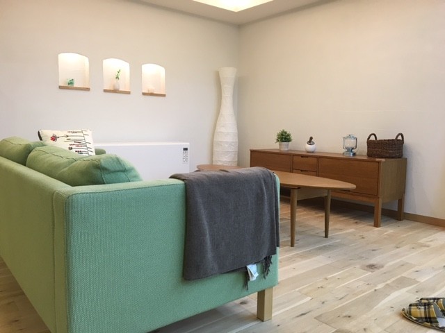 弊社ショールームでは、珪藻土以外にも無垢フローリング等の自然素材を体感できるスペースがございますlaugh