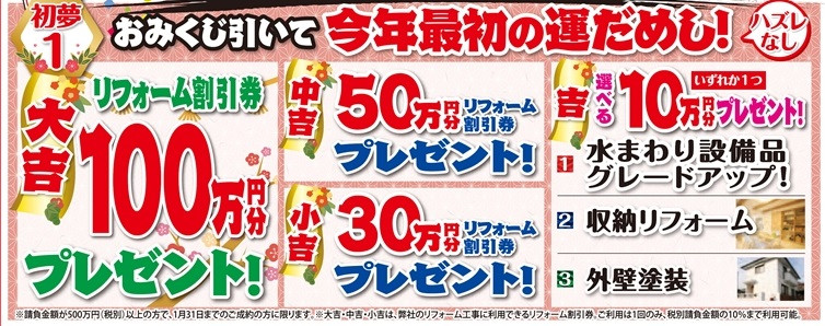 お客様のお持ちの年賀状が1万円のリフォーム券に変わるチャンス!