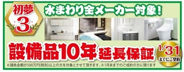 1月31日までにご成約のお客様に水まわりの設備品を10年延長保証!!
