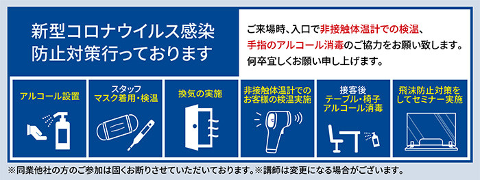 ※ご来場時、入り口で非接触体温計でのお客様の検温のご協力をお願い致します。