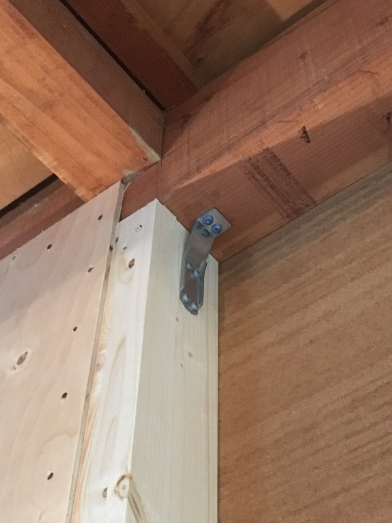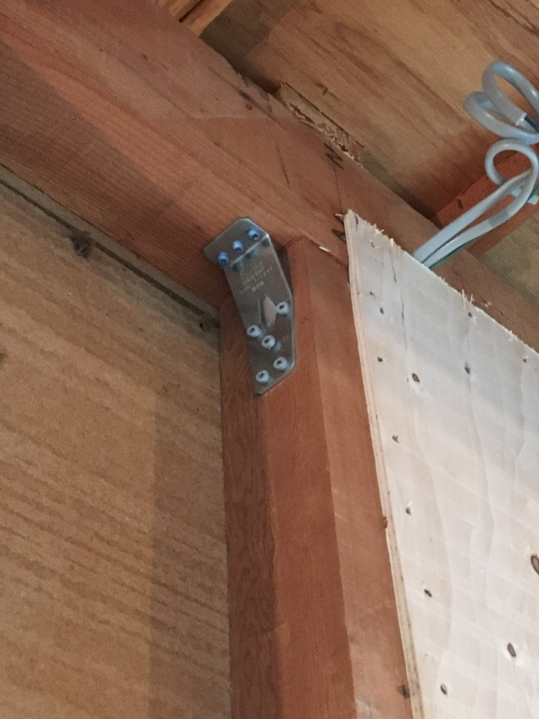 ▼筋交いも、金物でしっかり固定します。