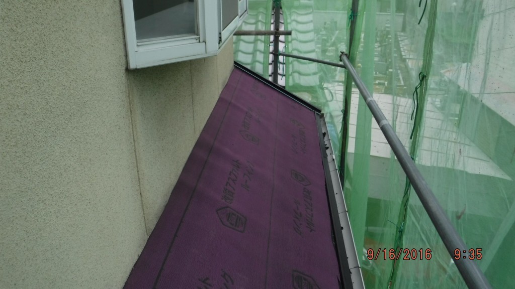 上から防水シート(アスファルトルーフィング)を敷き込み、さらにその上に