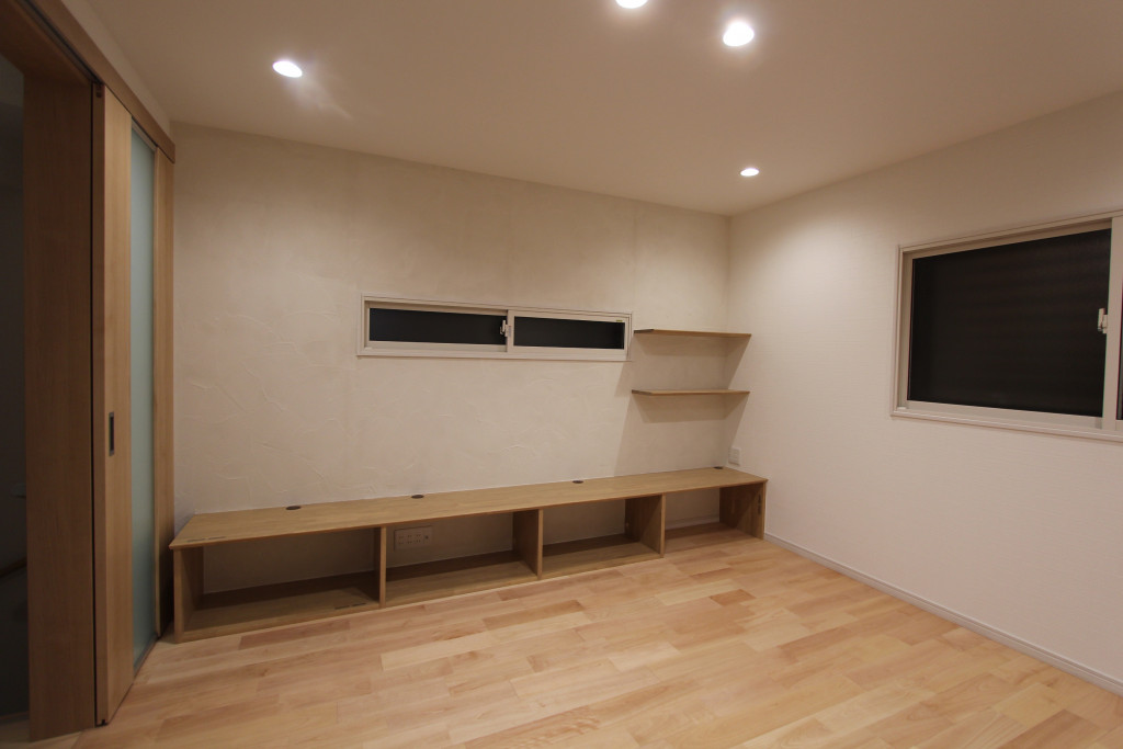 右端だけを下に板を設けず、足を入れて使うデスクコーナーとして使用します。