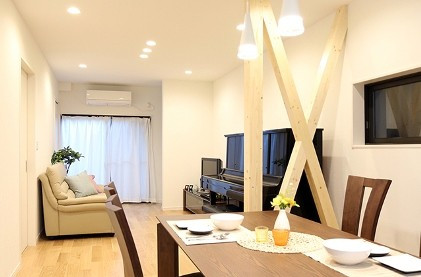 耐震診断をし、耐震上必要な柱は化粧柱・化粧筋交いとすることで、