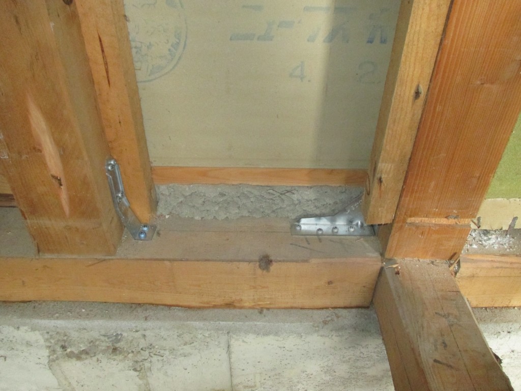 大きな地震の際、柱が抜けてしまわないように構造体同士を金物で固定します。