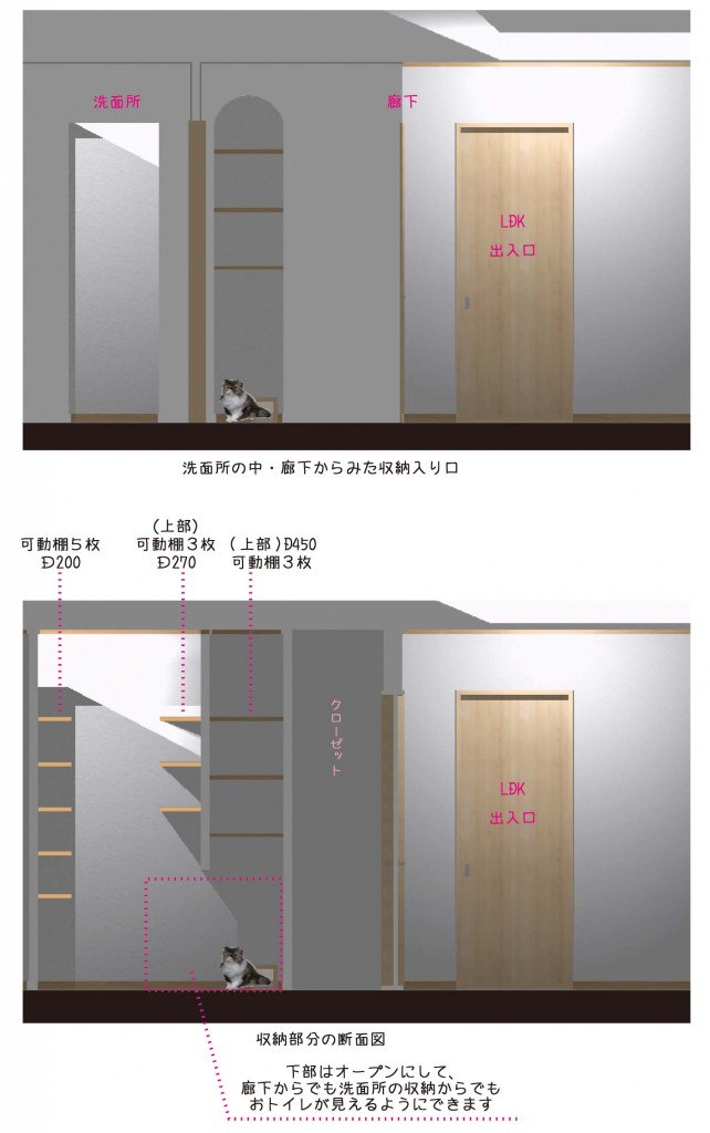 こちらのスペースに、ねこちゃんのトイレを置いていただくプランです。