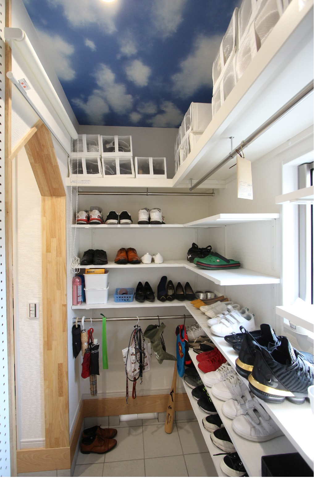 玄関横のシューズクロークの天井は青空です。