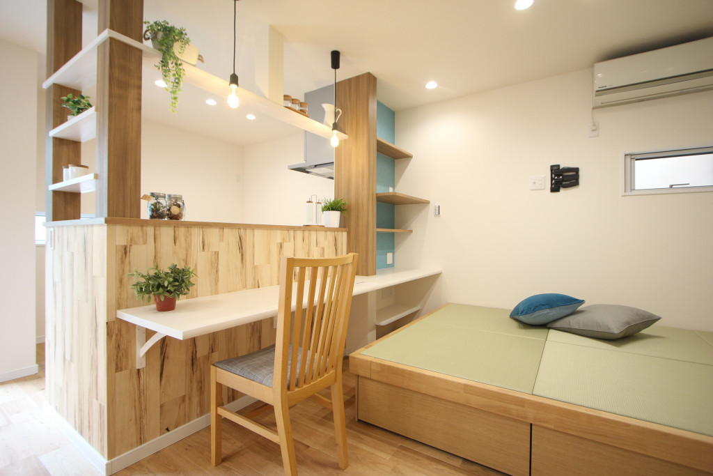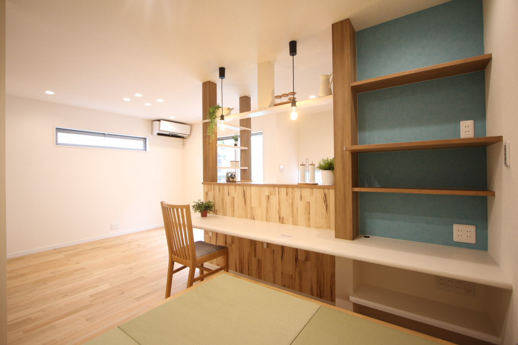 また畳コーナーに座りながらパソコンができるようキッチンカウンター横に