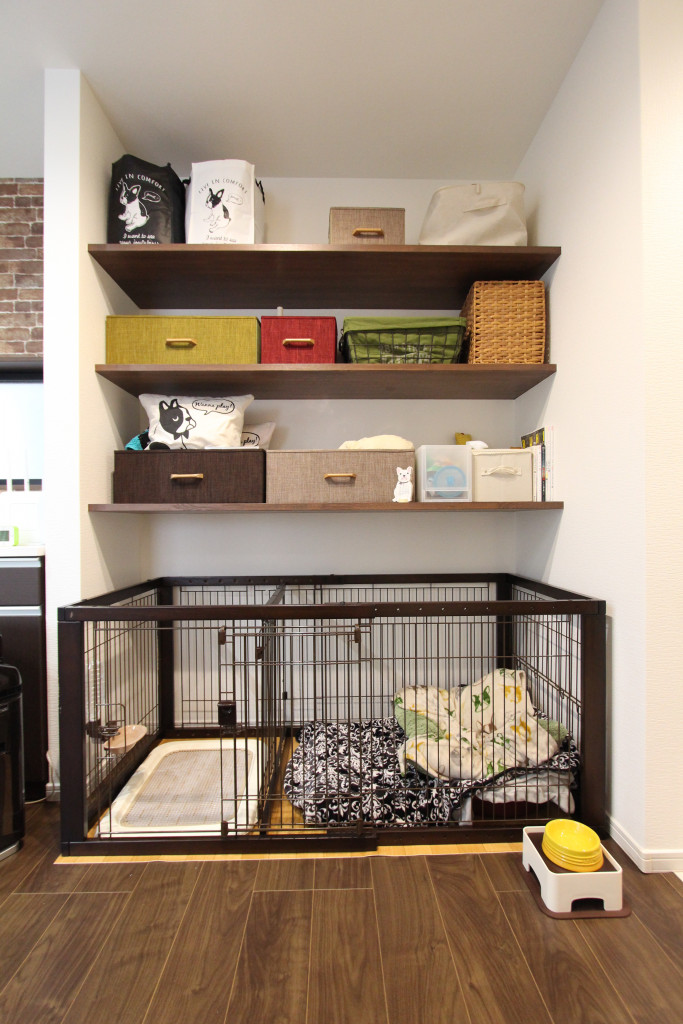 こちらはゲージを置く場所の上の空間を棚にしてペット用品置き場にした事例です。
