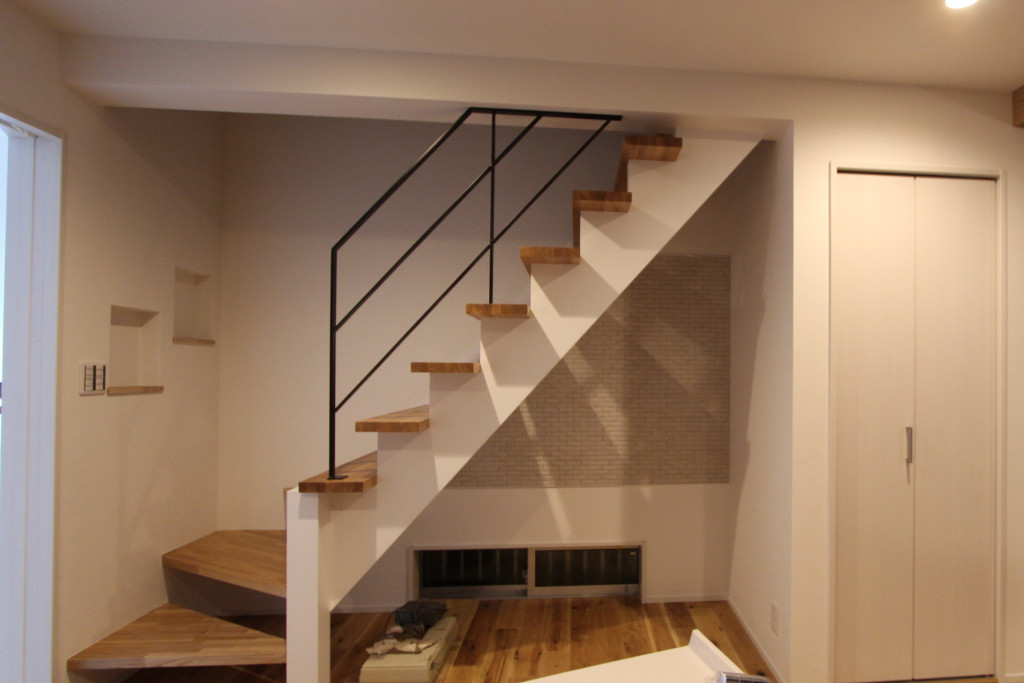 こもりがちな階段下ですが、オープン階段なのでその心配もなく、階段下の壁の一部を