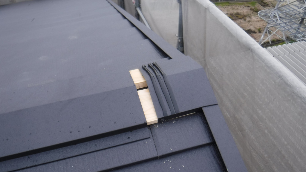 また、棟板金の貫板も新品に交換、釘の代わりにビスで固定、つなぎ目の