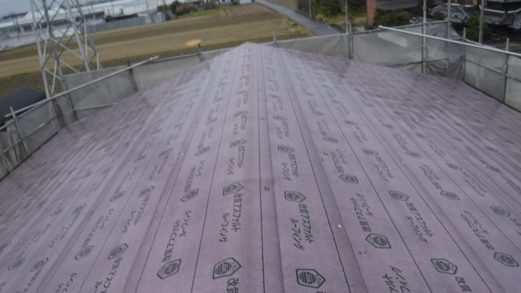 カバー工法では現状のスレート瓦の上にルーフィングを敷き