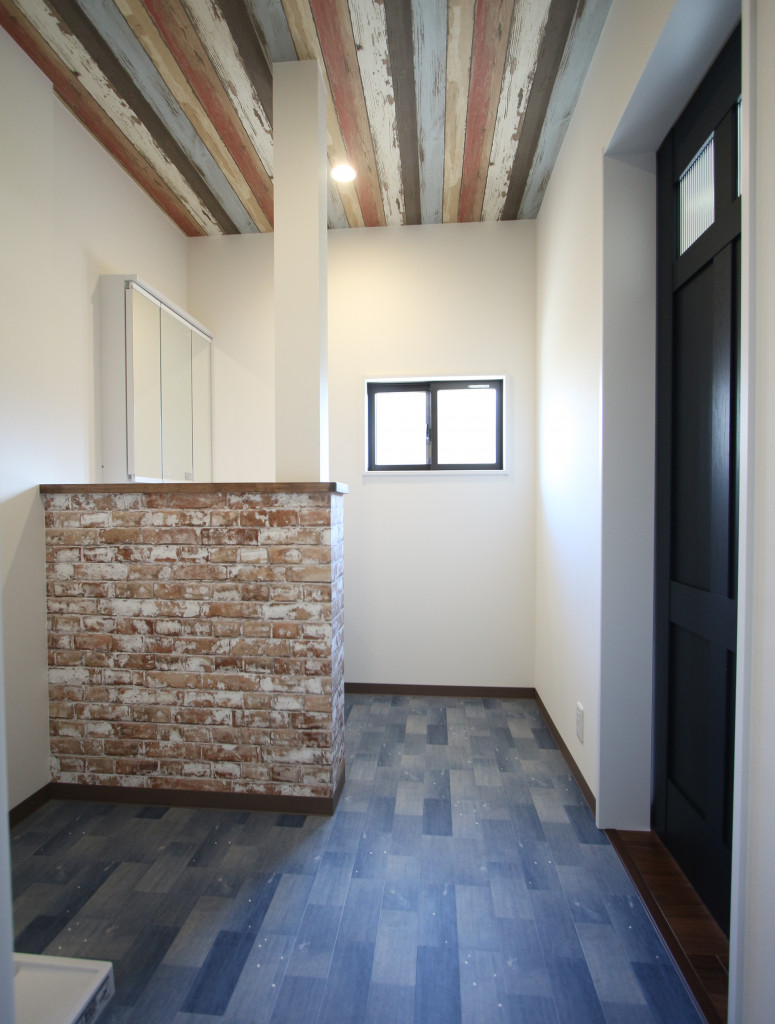 洗面台の横に腰壁を。
