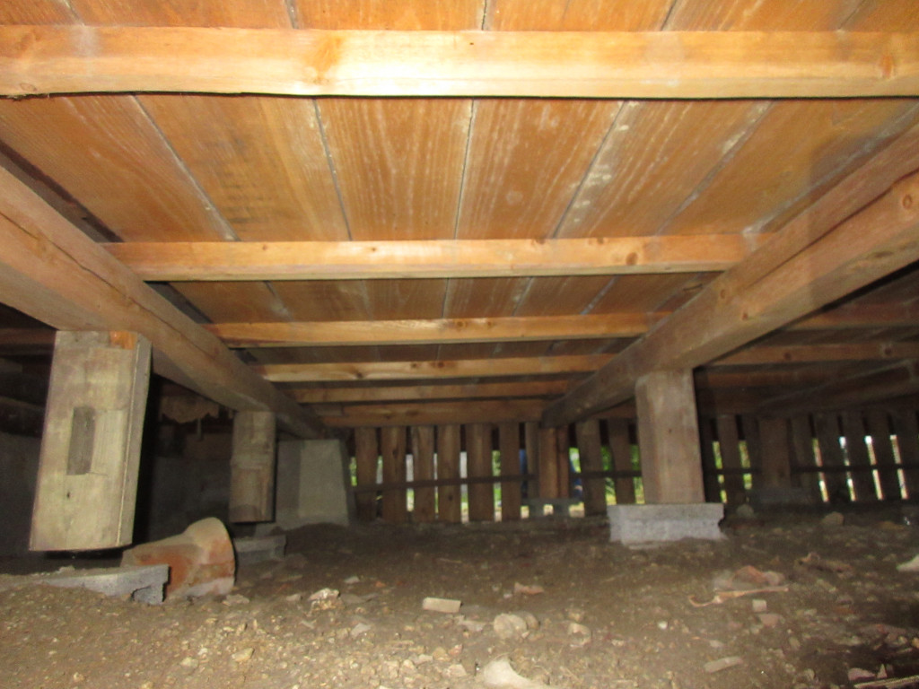 ↑時間の経過により地面が締め固まり床束が浮いてしまう状態