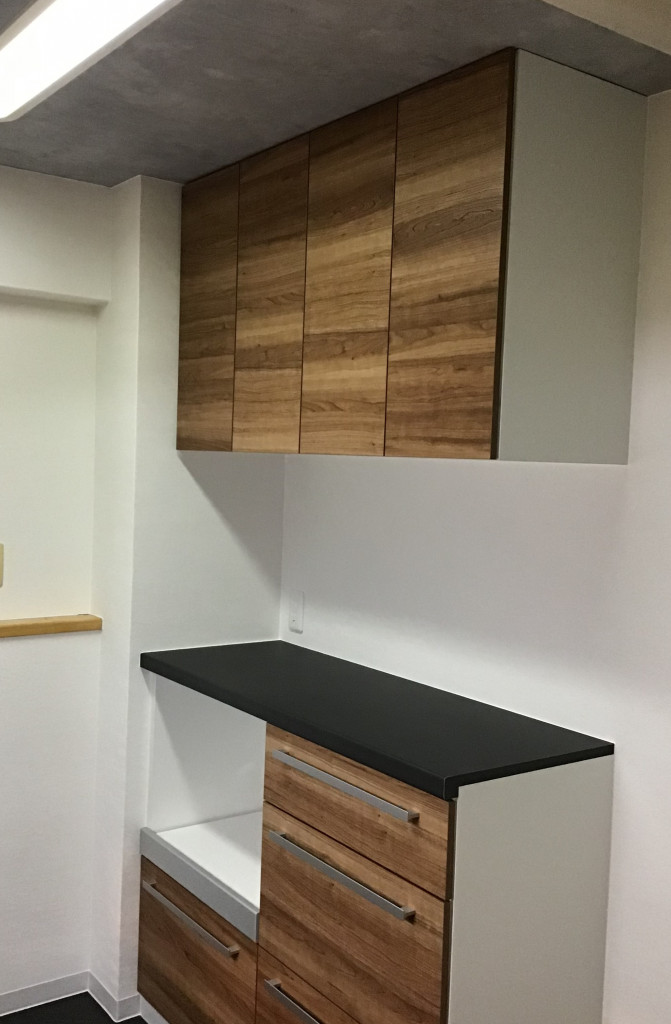 キッチンと色を合わせて、カップボードも新調しました(^^♪