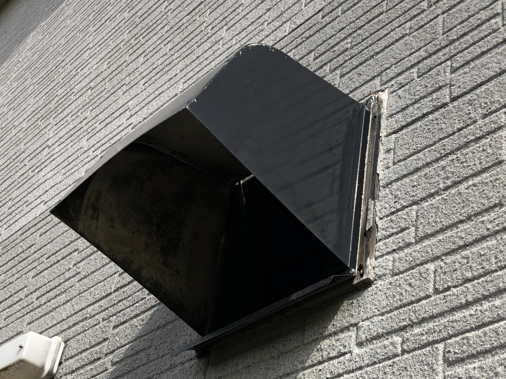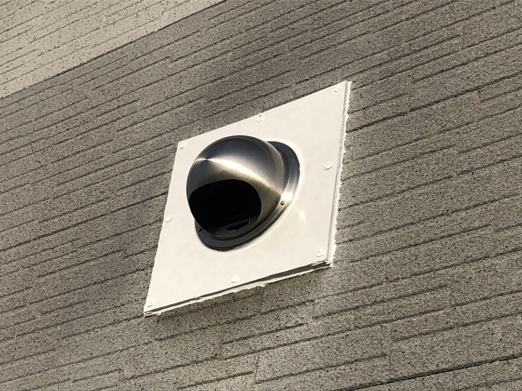 元々取り付けられえておりました外部のカバーが強風で外れかかっておりましたので新しくベントキャップを取付させて頂きました。