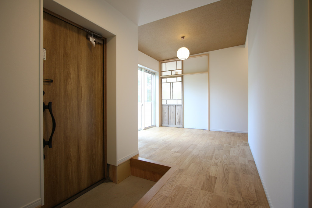 玄関まわりの壁を取り払い、隣接する2部屋を
