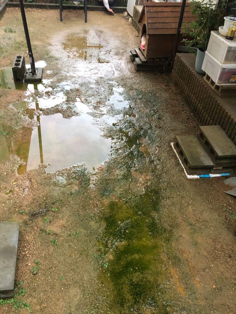 また、お庭は雨が降った後はいつも水が溜まったままになっておりました。
