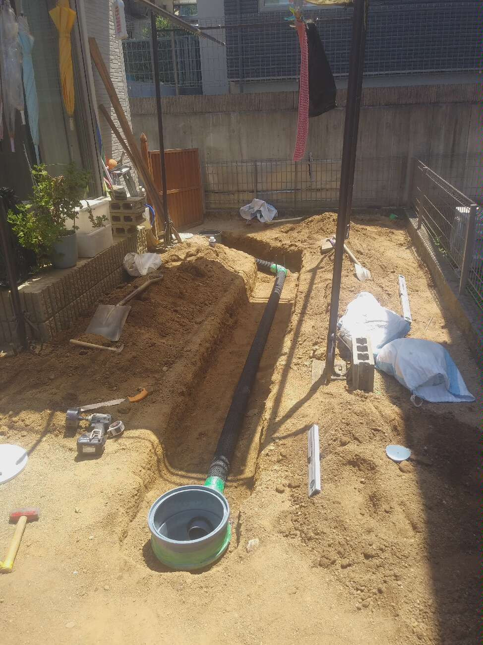会所桝・透水管を設置することで水の逃げ道を作りました。