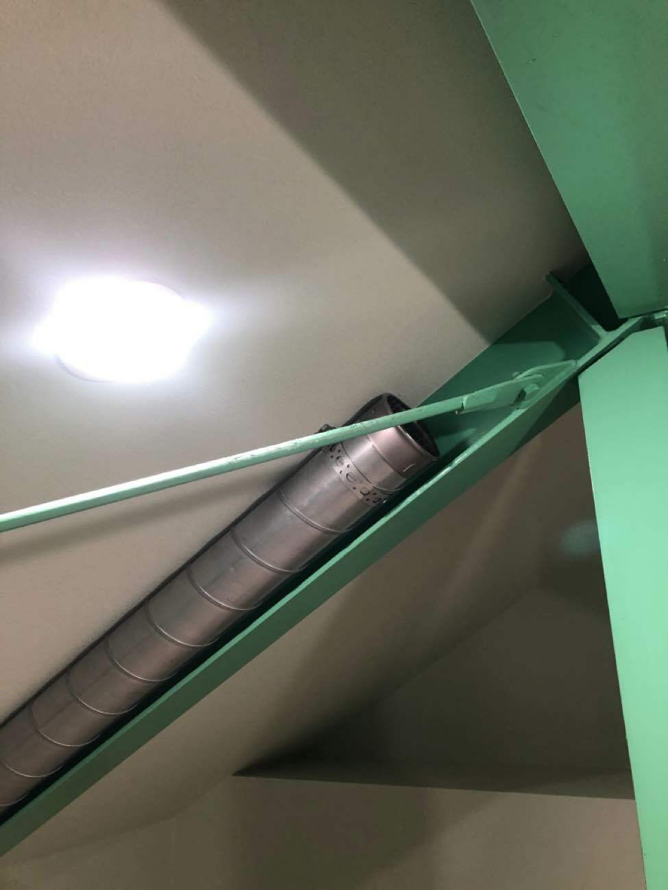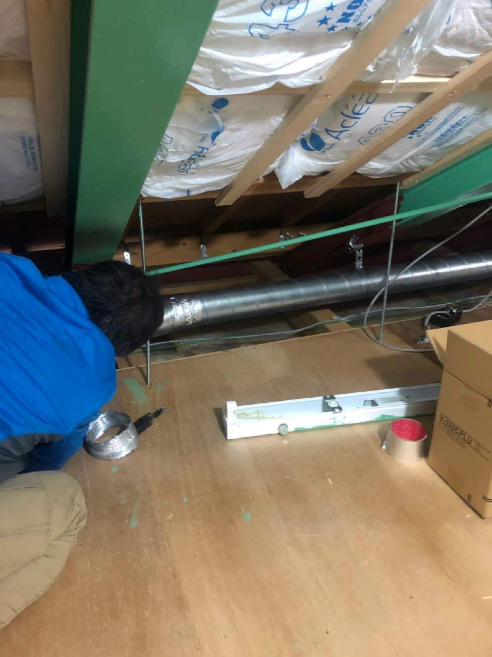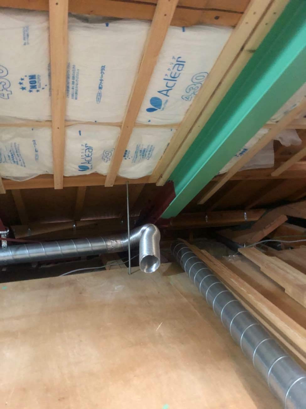 ご主人様のご意見で換気扇のダクトは邪魔にならない様、H鋼の間に納める形で設置。