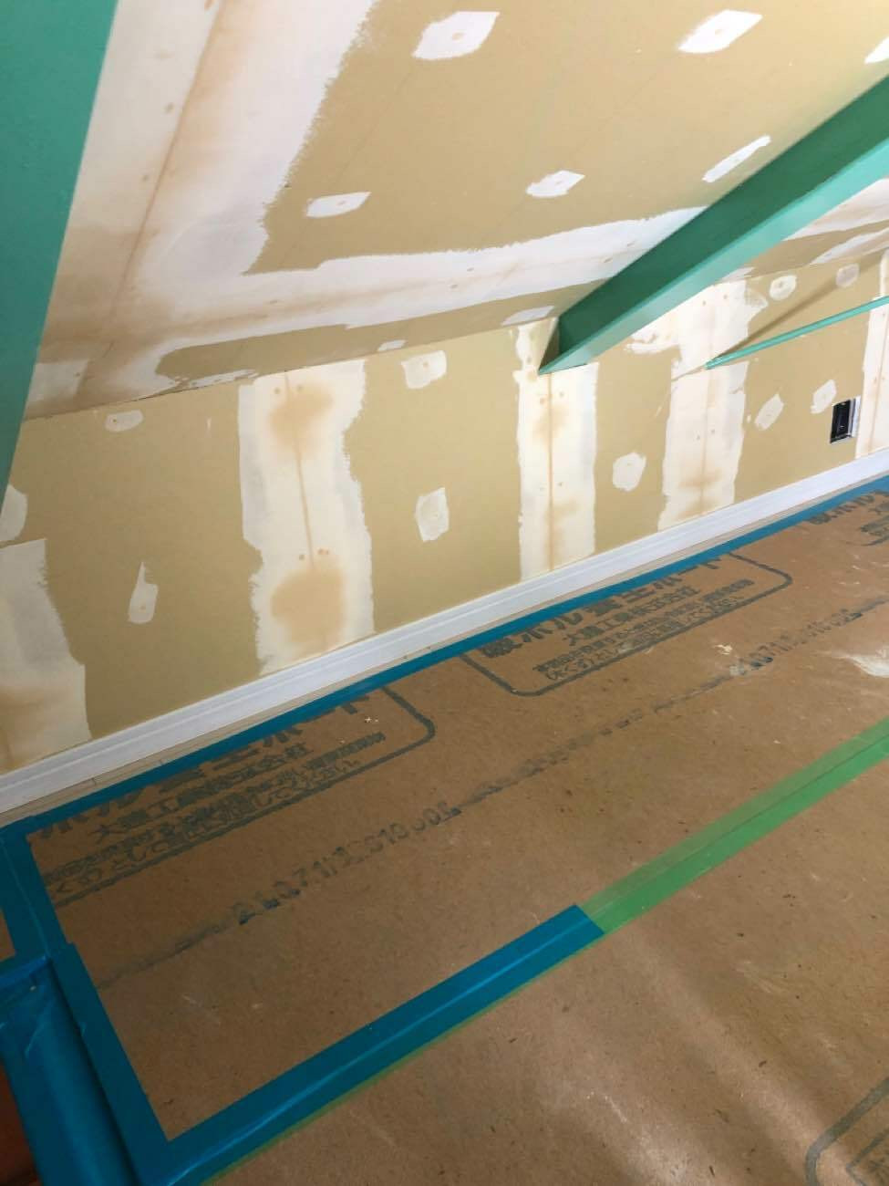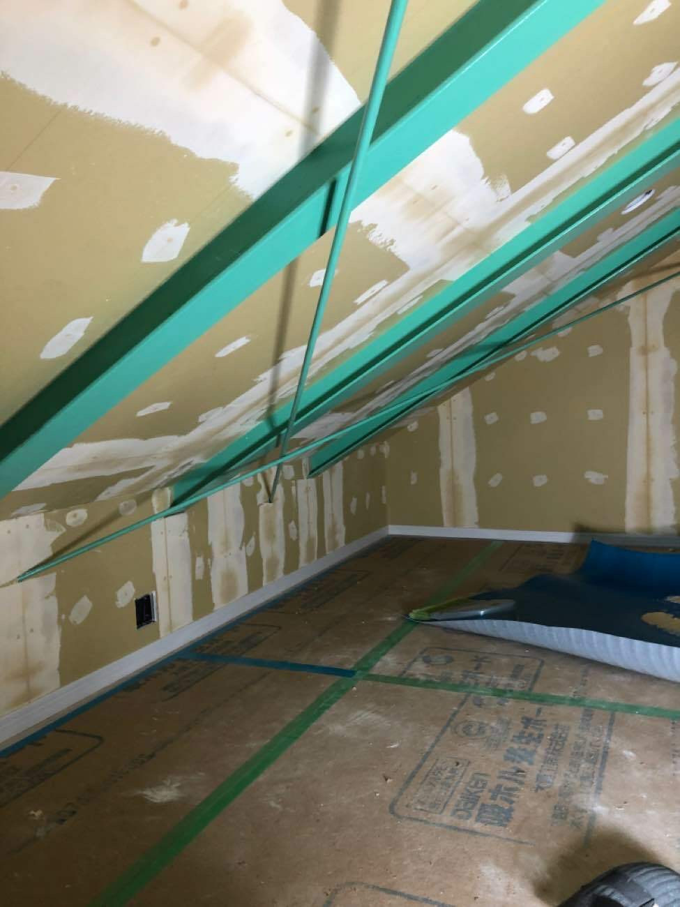 石膏ボードを貼り、クロスを貼る為パテ処理します。