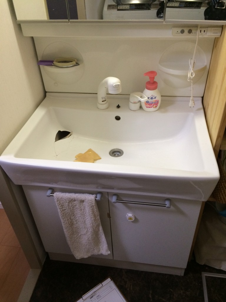 お客様のお悩みとして、洗面台のボウル部分が割れてしまっており交換したいとのことでした。