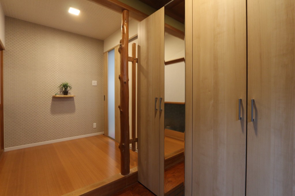 △大容量の玄関収納を設。内装は、和風の雰囲気をこわさないようにご提案。