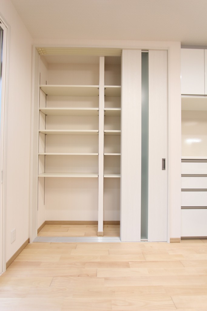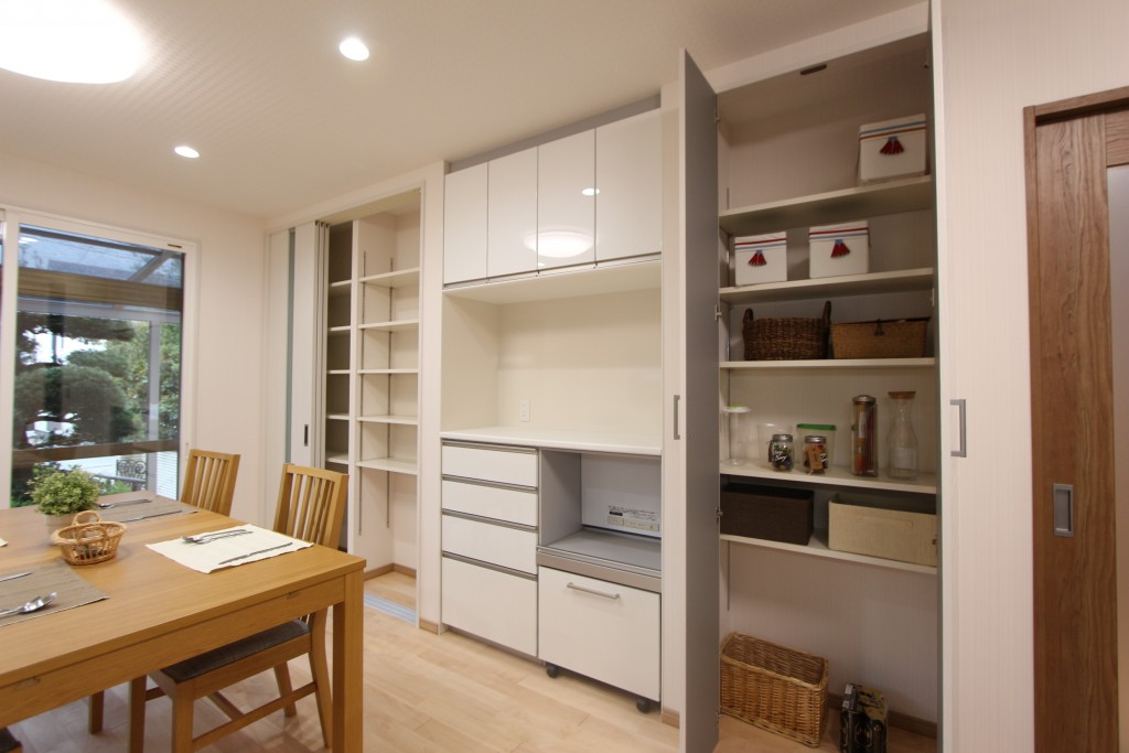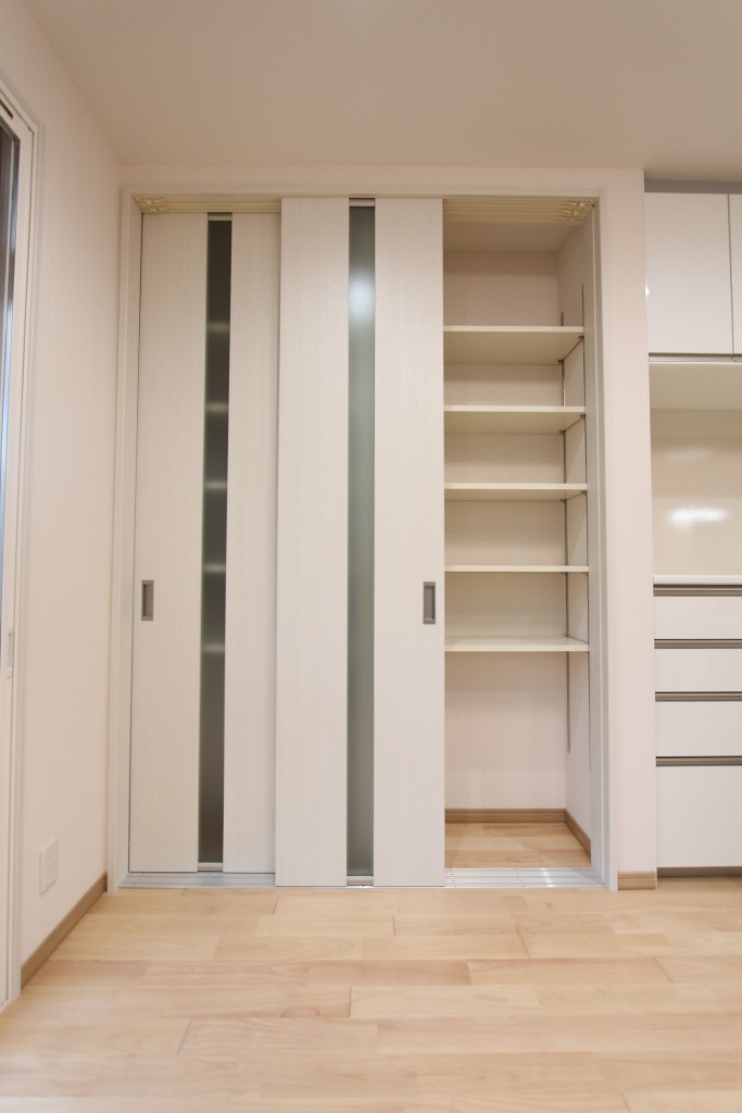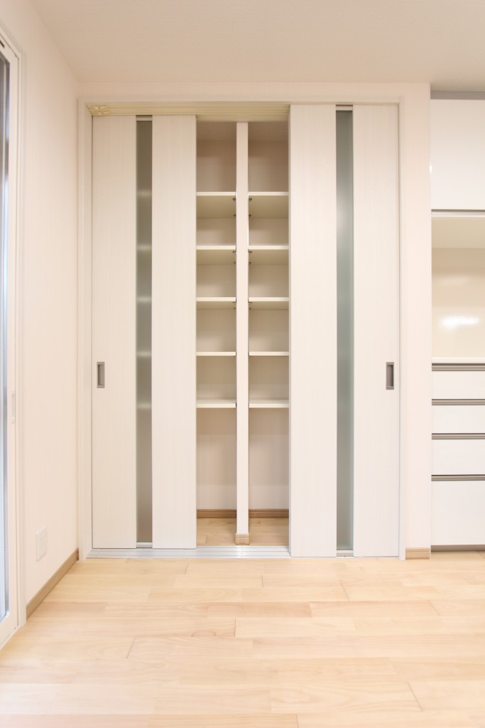 奥行がそろうこと、色が統一されること、天井まで収納できることにより、収納力も空間もよくなりました。