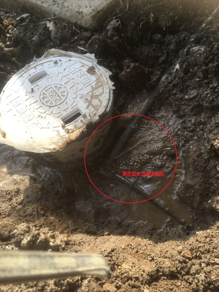 約40年前の塩ビ管の繋ぎ目で漏水を発見しました。