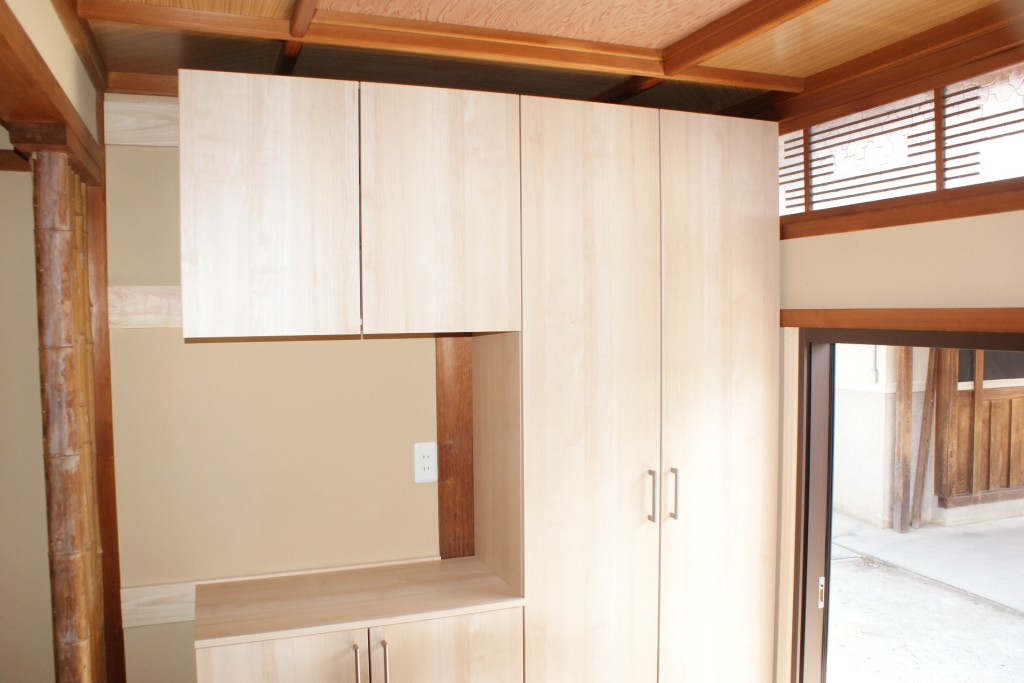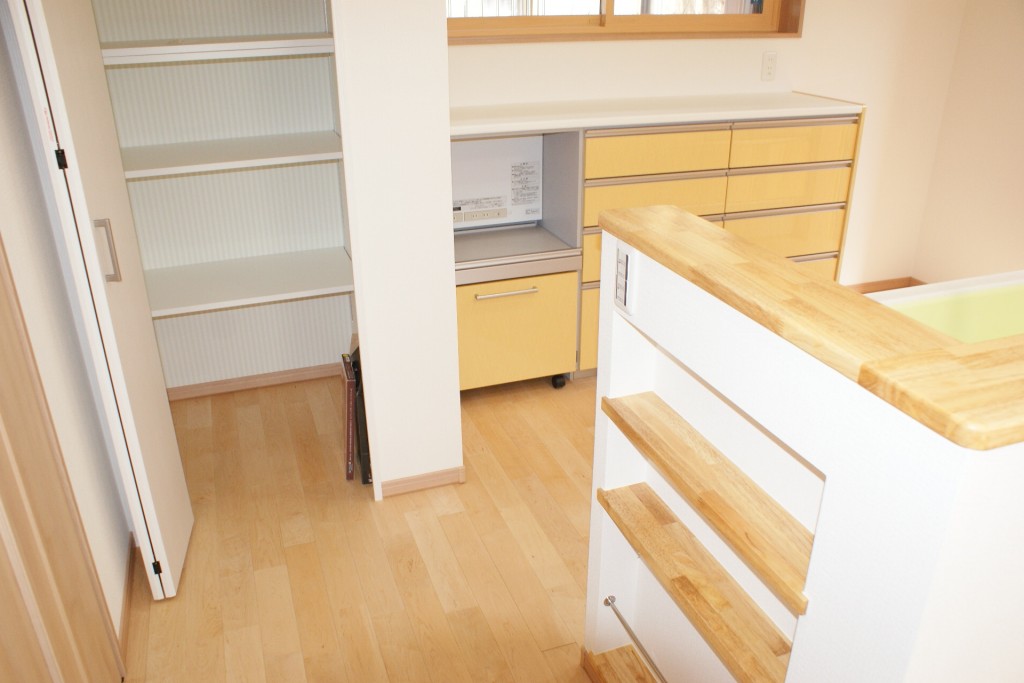 横には収納スペースを設け、たっぷり収納が可能になりました