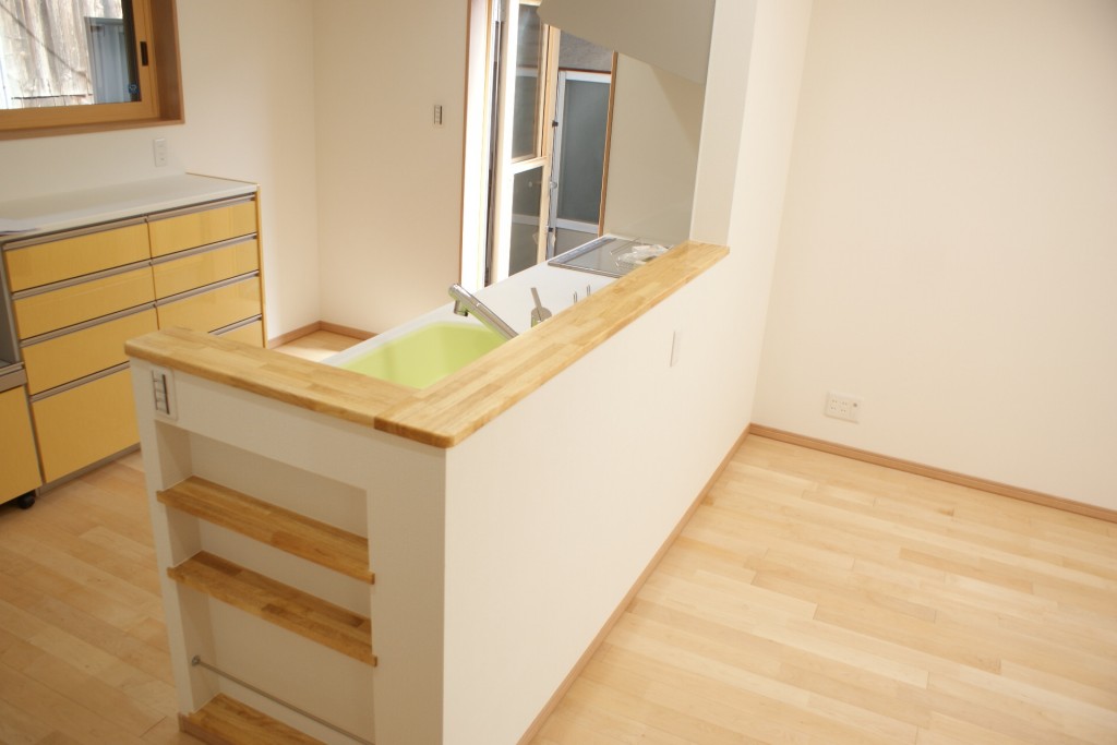 キッチン前にはカウンターを、側面にはニッチスペースを!