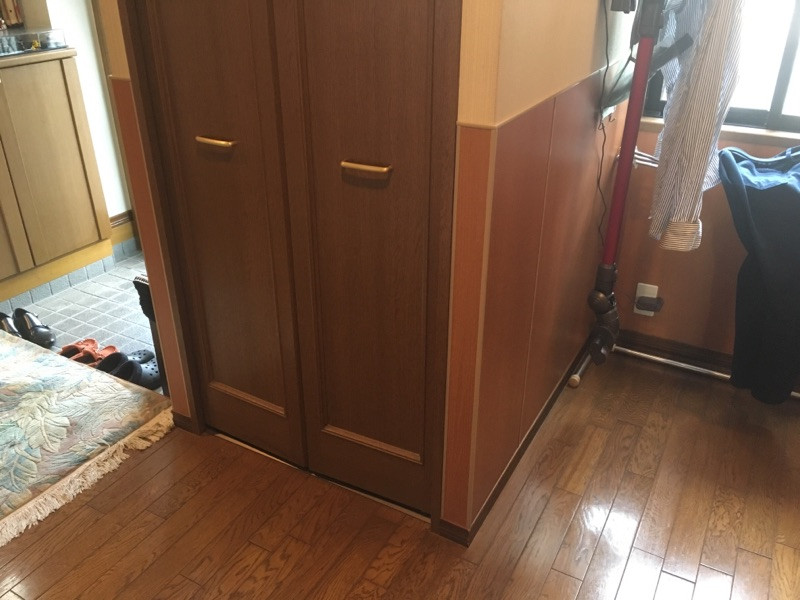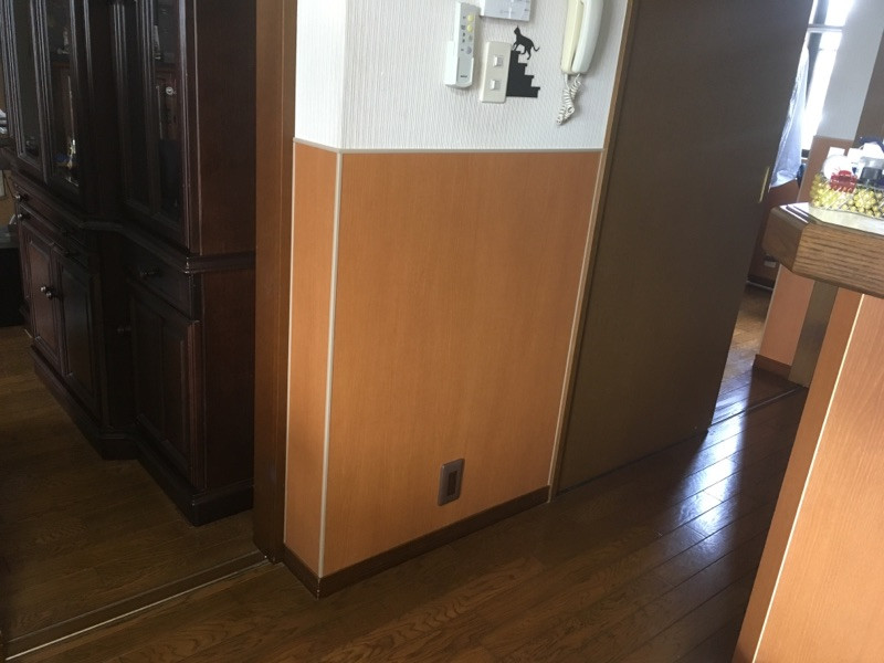 この様に木目調のパネルを猫ちゃんが届かない所まで貼らせていただき、爪が入らない様にさせていただきました。