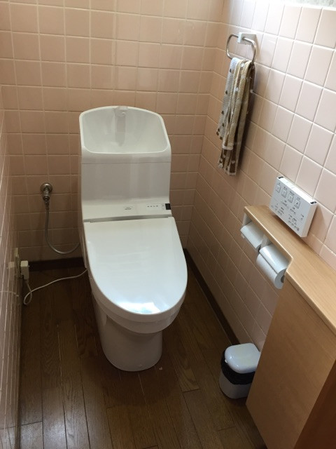 トイレも節水タイプになり、収納付の二連紙巻器を付けさせていただきお客様に大変喜んでいただけましたblush