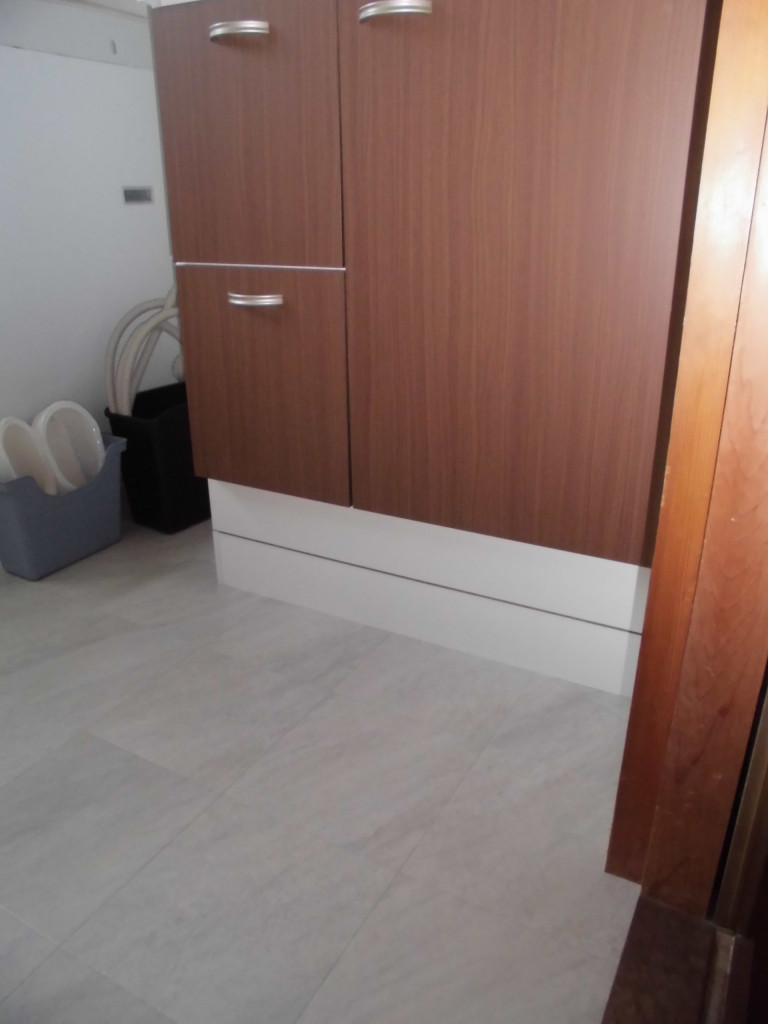 ・洗面化粧台、洗濯機の位置を変更し動線と有効空間を拡大又、洗面化粧台に10cmの架台を設け化粧台の高さを上げました。