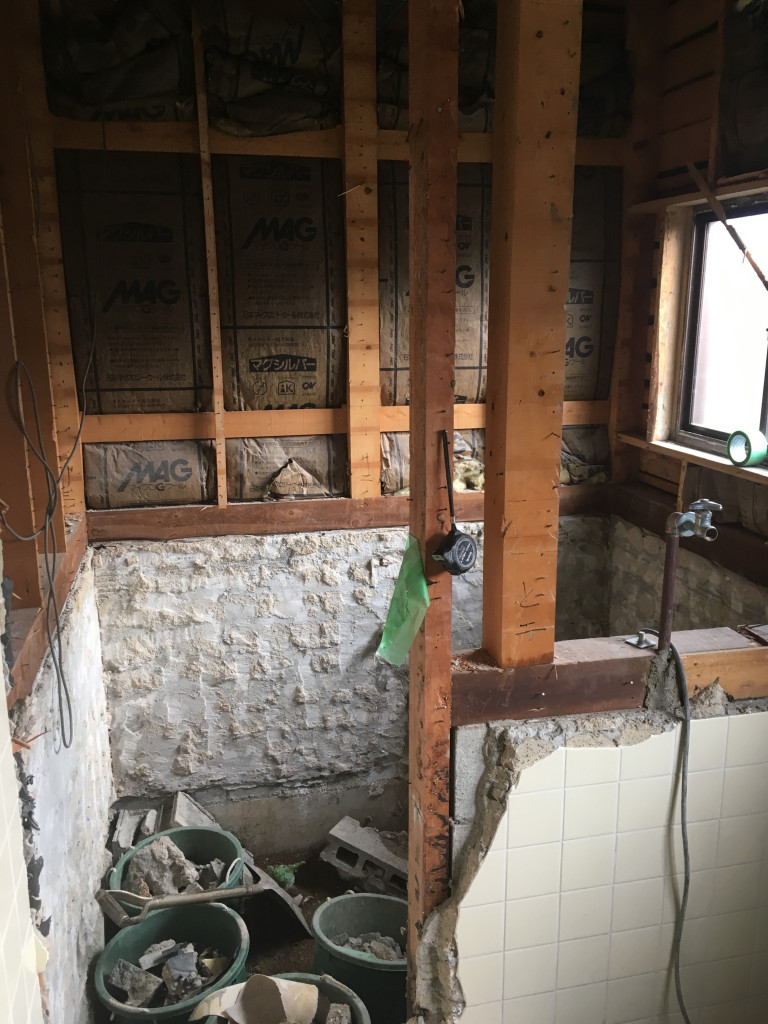 ・浴室の間仕切り壁が約80CMがコンクリートブロック上部が木製下地である事が調査で判明
