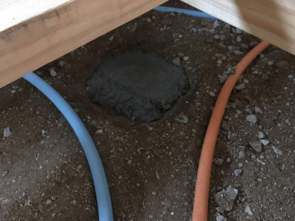 ・洗面所の床がコンクリート+クッションフロアーで仕上げられている為給水・給湯管の交換が現状では出来ない事が判明