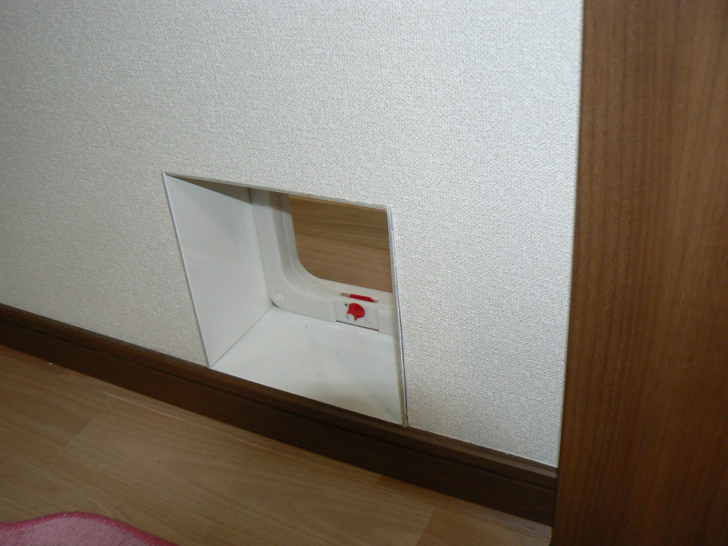 △リビングの扉の横にネコちゃん専用のドアを設けました。ネコちゃんが自由に出入りすることができます。