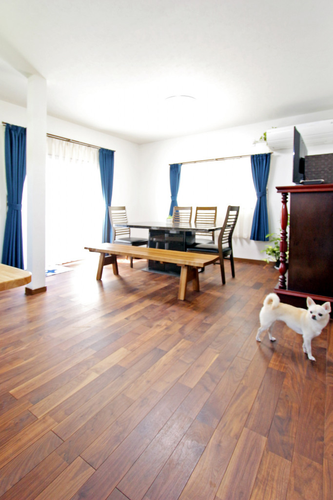 △汚れに強く滑りにくいペット対応のフローリングにし、ワンちゃんも元気に走りまわっています!!