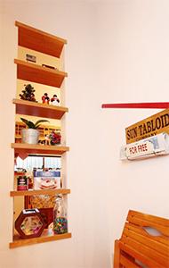抜けない柱を活かして造作して下さった飾り棚は、キッチンに採光がとれるし、リビングからダイレクトに見えないところが良いです。