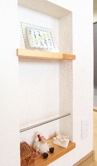 物が多いことにお悩みだったK様。スペースを有効活用するために飾り棚を造作。