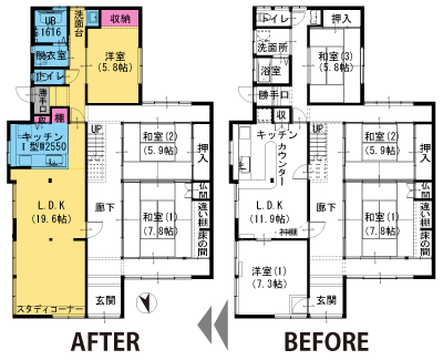 以前は部屋が区切られており、使い勝手に悩んでおりましたが、間仕切りを取って広いLDKにしていただけてとても使い易くなりました。