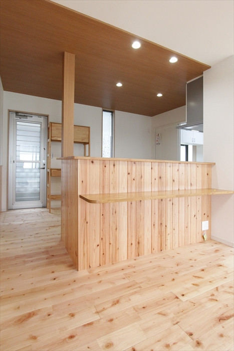 羽目板と無垢フローリングをご提案していただき、夢だったログハウス風の家になりました。