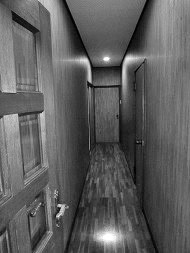 廊下の一角にご主人様専用のスペースを設け、長い廊下を有効活用。バイクのジャケットやヘルメットを収納できる棚を造作しました。