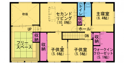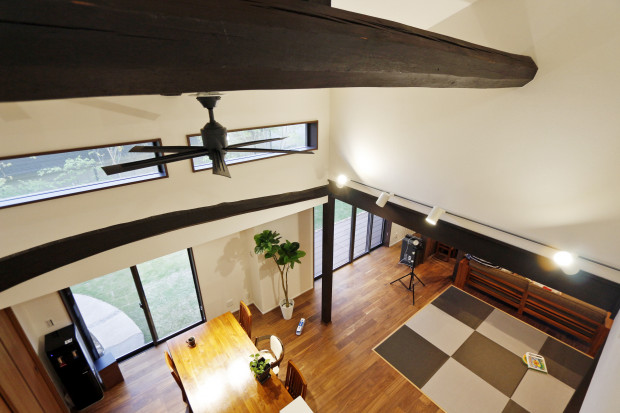 上部の吹き抜けから、2階のフリースペースにいるお子様ともすぐコミュニケーションがとれます!