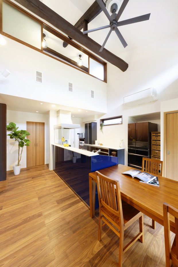 ダイニングキッチン上の吹き抜けと繋がっているので、キッチンにいる奥様とお子様の会話が楽しめます!