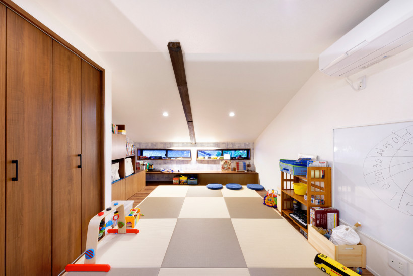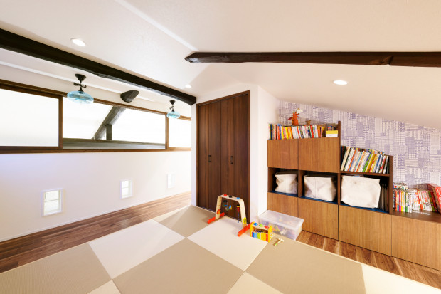 お子様のスタディスペースとして、客間としても使用できるフリースペース。奥に見える窓から、帰宅した家族を確認できます!
