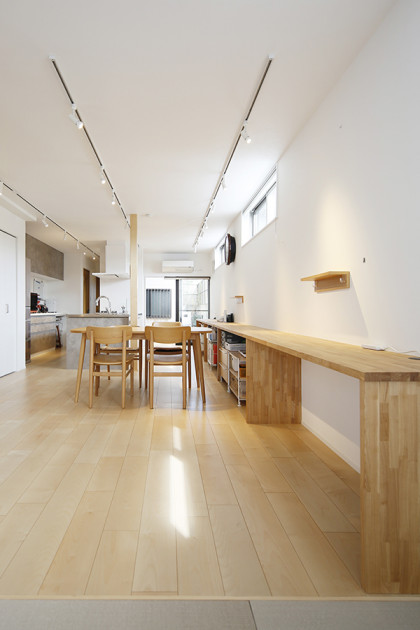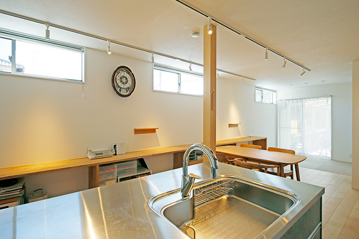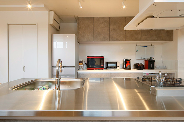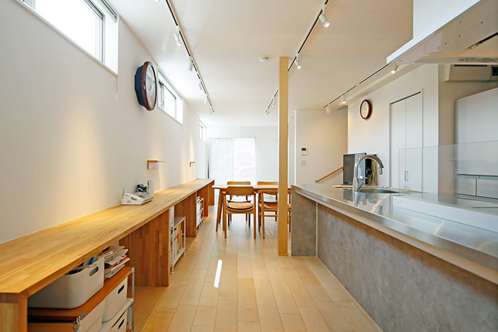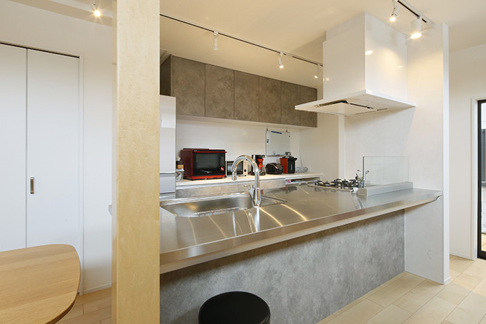 キッチンと造作カウンターを平行にレイアウトする事で、抜け感のある空間になりました。