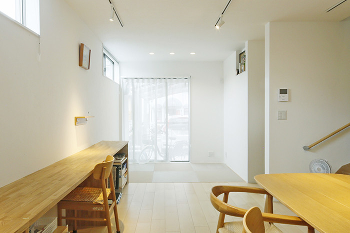 畳コーナー~LDK~中庭と配置したことで、南側の光を取り込んだ開放的なウチソト空間をご提案しました。